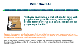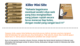 - Produk yang siap jual dengan seluruh hasil penjualan 100% untuk Anda (How To Create Killer Mini Site That Sell like Crazy ... versi Bahasa Indonesia). Buku inilah yang menjadi fenomena di internet beberapa tahun yang lalu...bahkan hingga saat ini. Hampir semua bisnis penjualan informasi yang ada di internet sekarang mengacu pada buku hebat ini. Miliki dan jual ulang produk ini dengan harga yang bisa Anda tentukan sendiri !