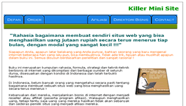 - Produk yang siap jual dengan seluruh hasil penjualan 100% untuk Anda (How To Create Killer Mini Site That Sell like Crazy ... versi Bahasa Indonesia). Buku inilah yang menjadi fenomena di internet beberapa tahun yang lalu...bahkan hingga saat ini. Hampir semua bisnis penjualan informasi yang ada di internet sekarang mengacu pada buku hebat ini. Miliki dan jual ulang produk ini dengan harga yang bisa Anda tentukan sendiri !